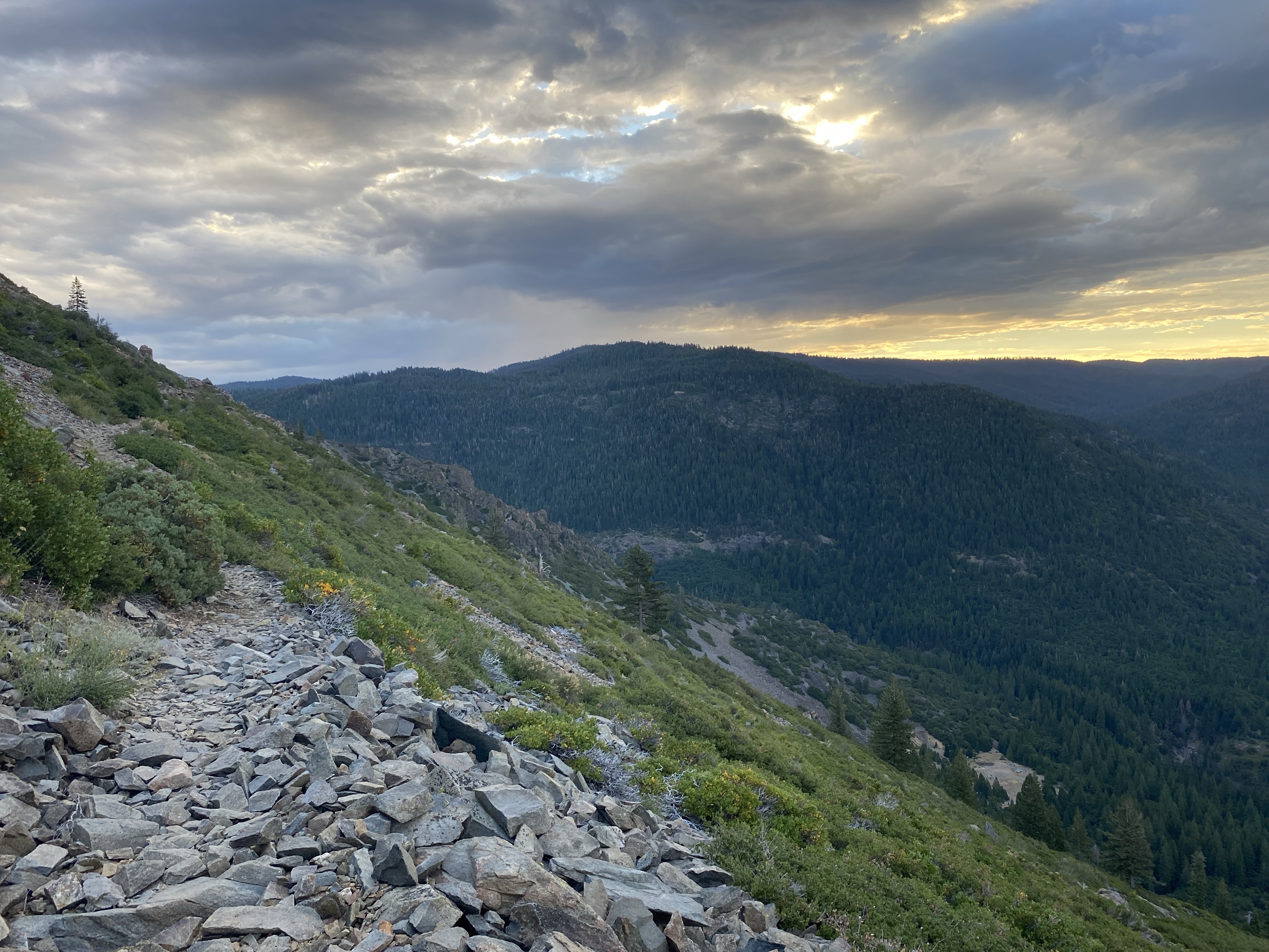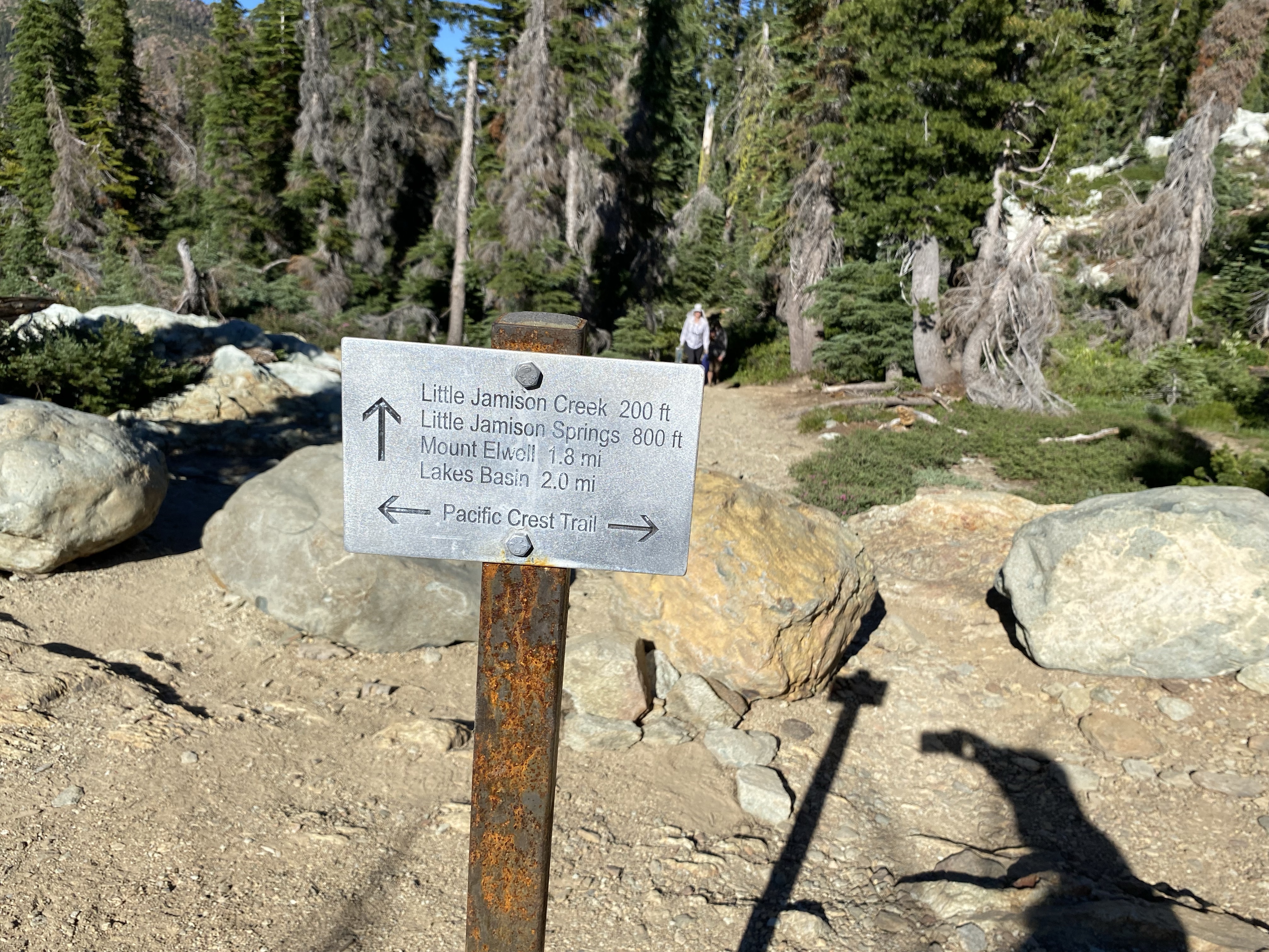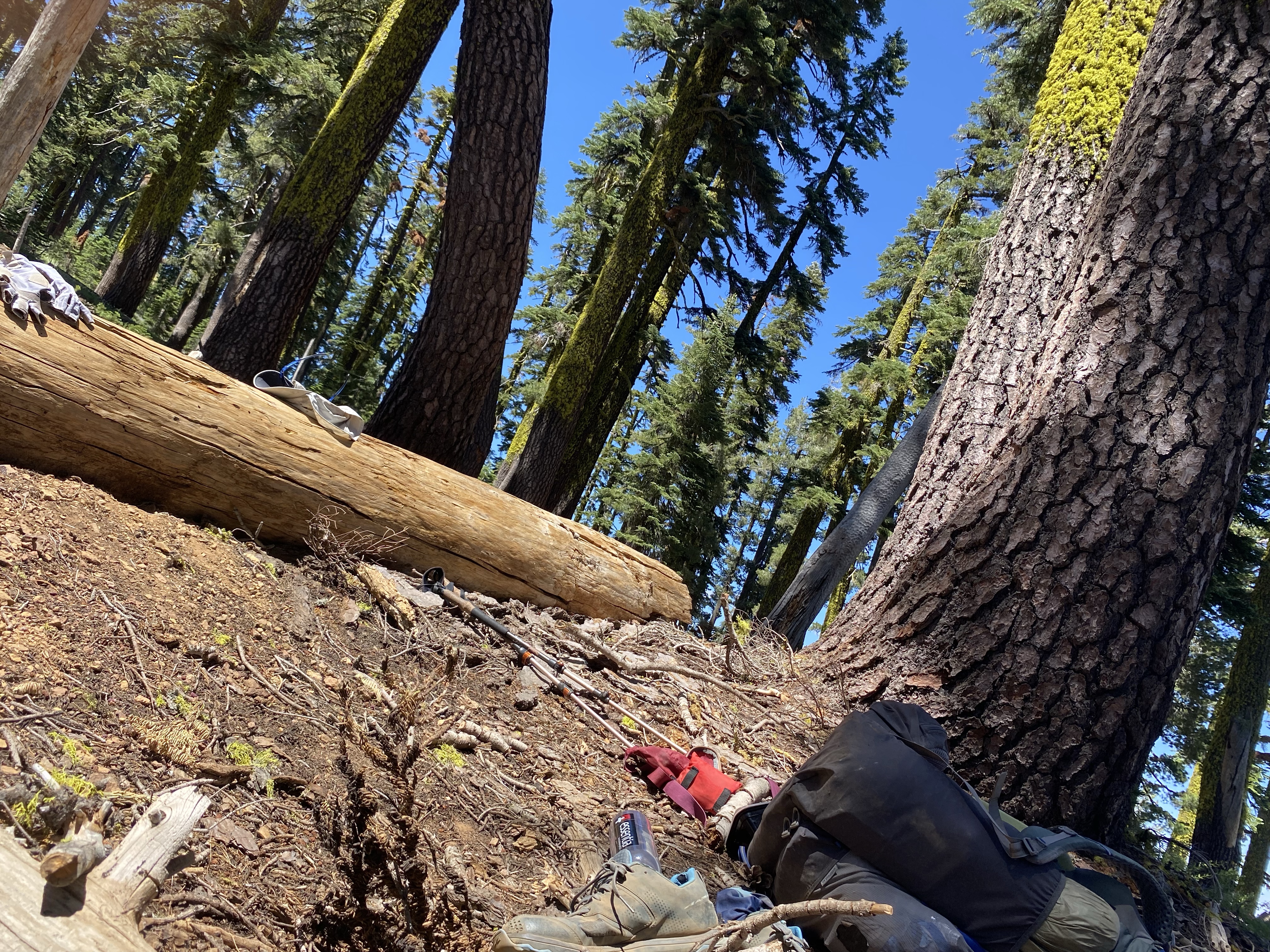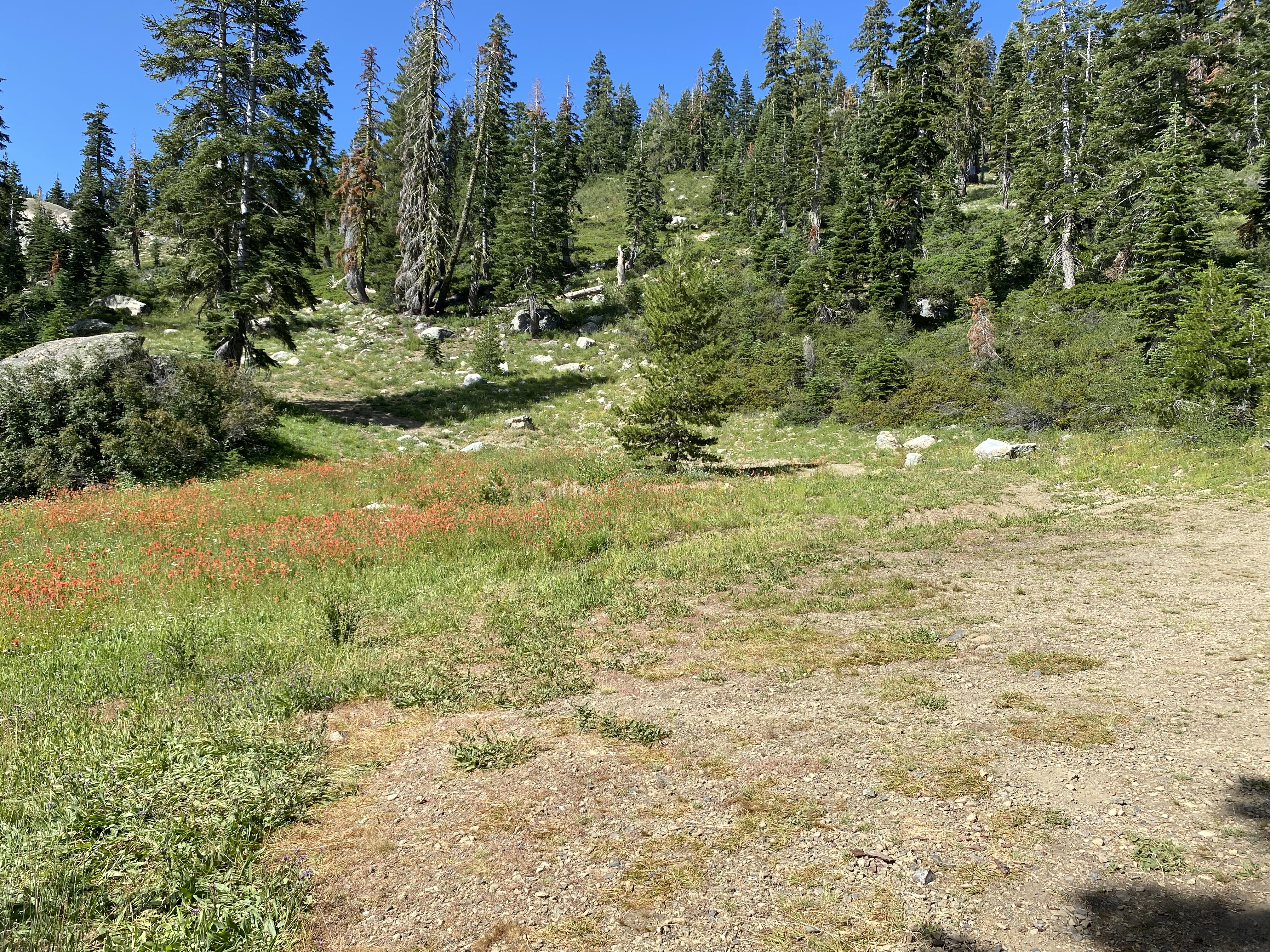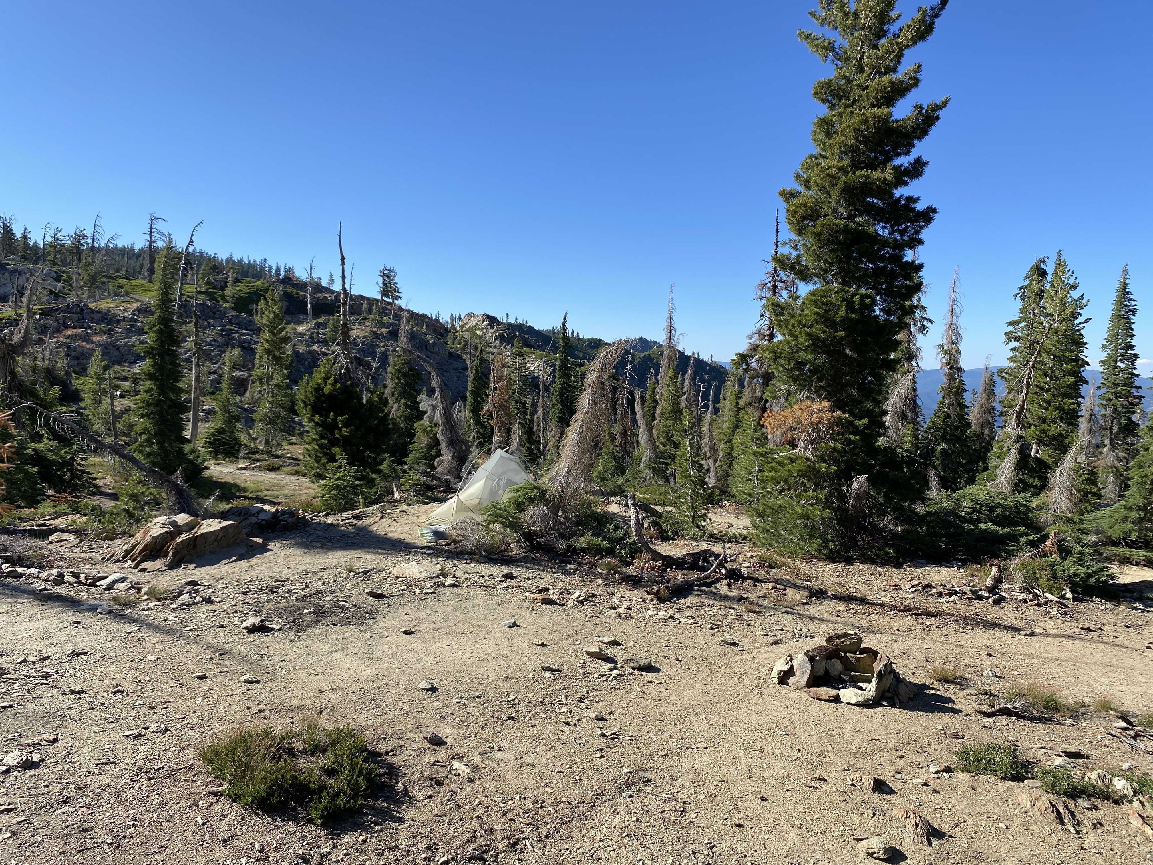 5 people, day hikers, passed me just before my planned camp spot, causing me fear that no spots would be available. Happily many spots existed and about a dozen hikers camped here.