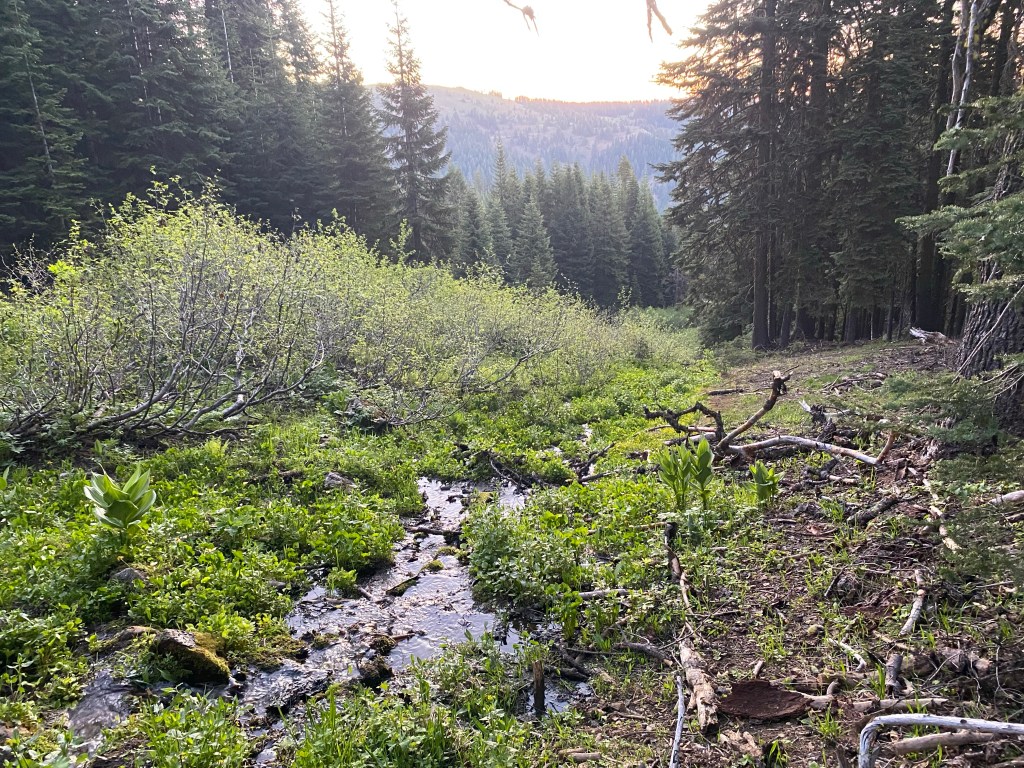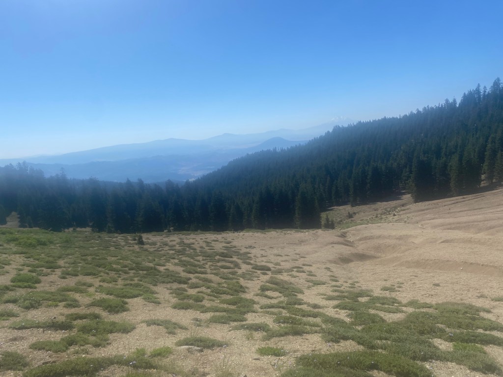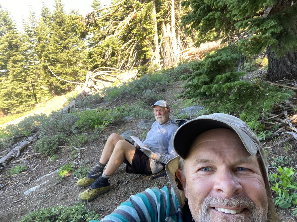 Trail has been very nice today. Gradual climbs and drops, with usually smooth forest ground. At some point we had several miles of lava rock, and it’s amazing to me how the trail makers built this 2653 mammoth trail.