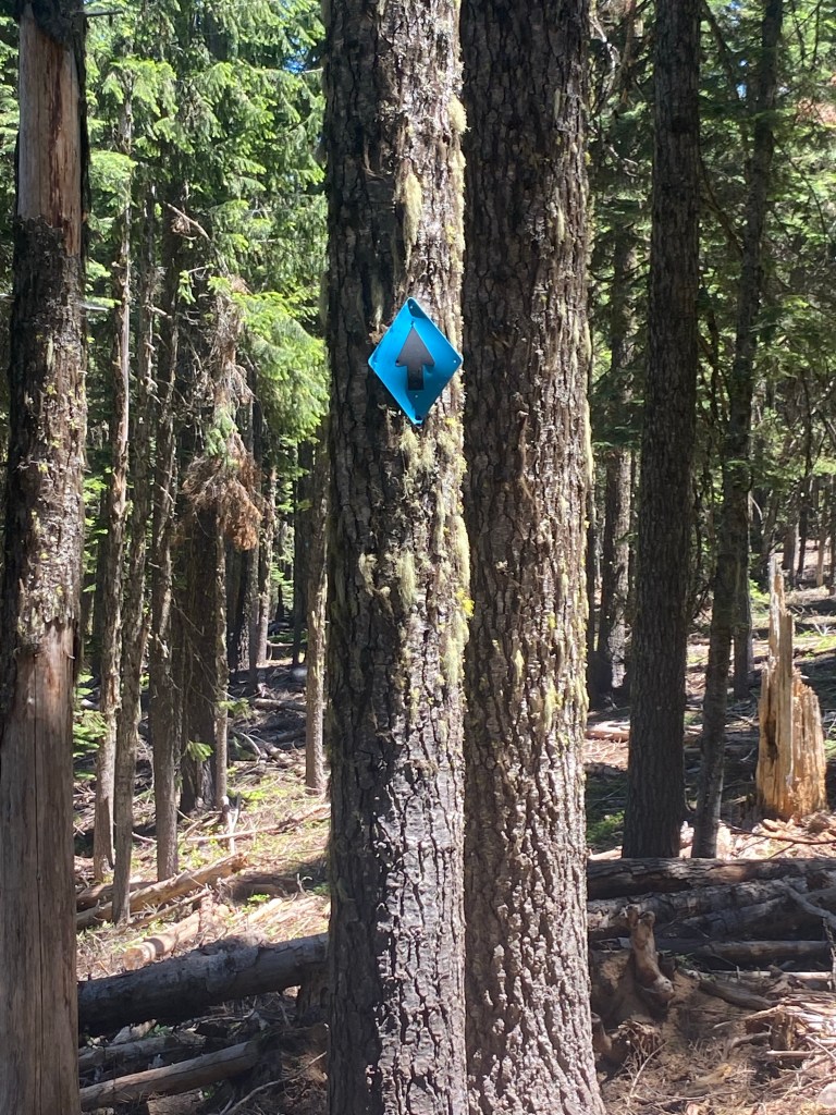 These blue signs have triangles (like the PCT) but are actually cross country trails and often have arrows pointing the wrong way. Rather irritating.