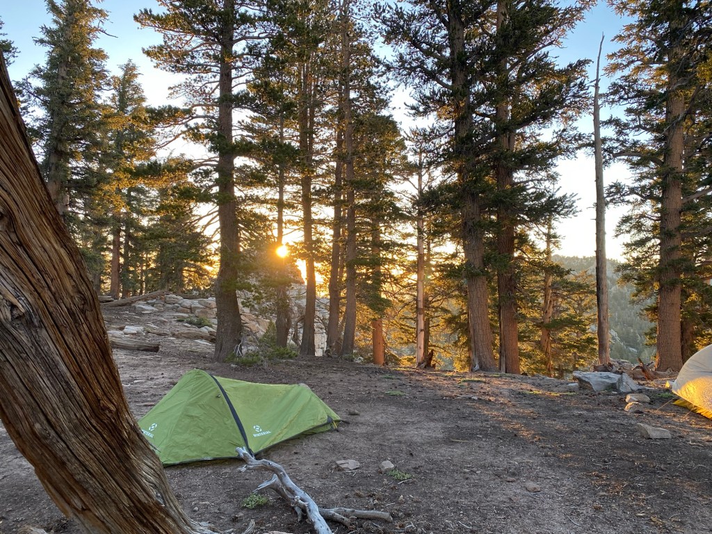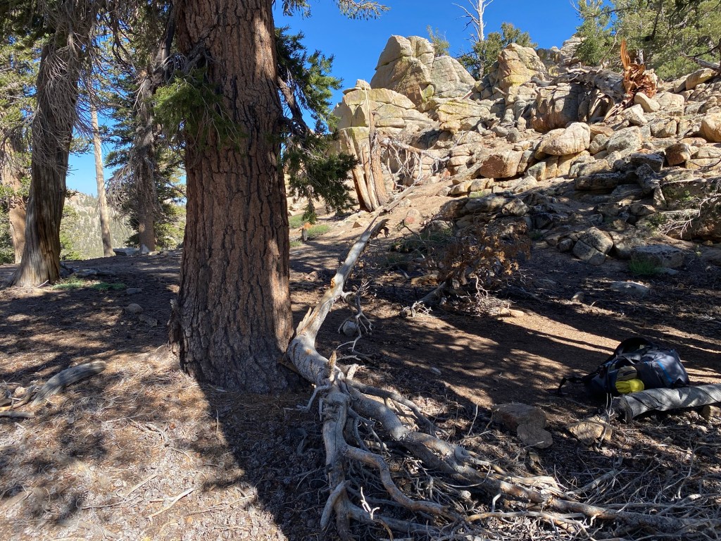 My camp spot day 1. 17 miles in. 3000 climb up and I’m at 8300. Got there by 5, so was able to relax. But no doubt that elevation change was a factor.